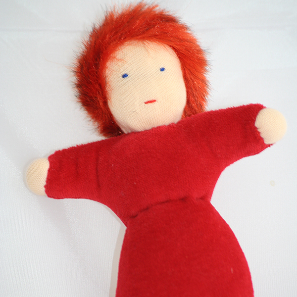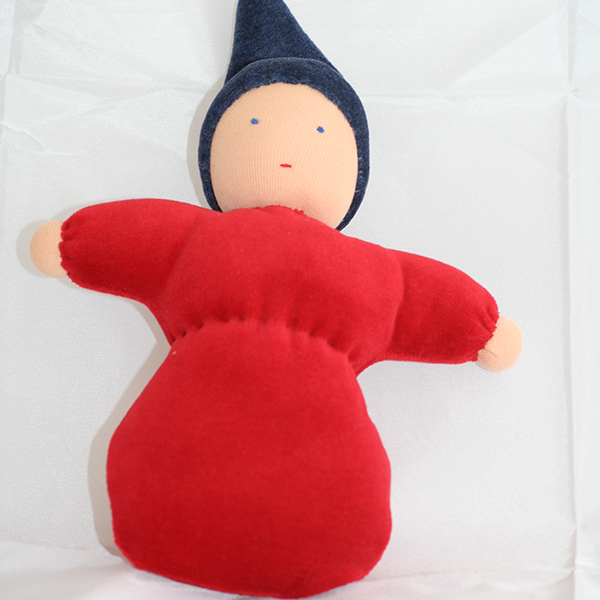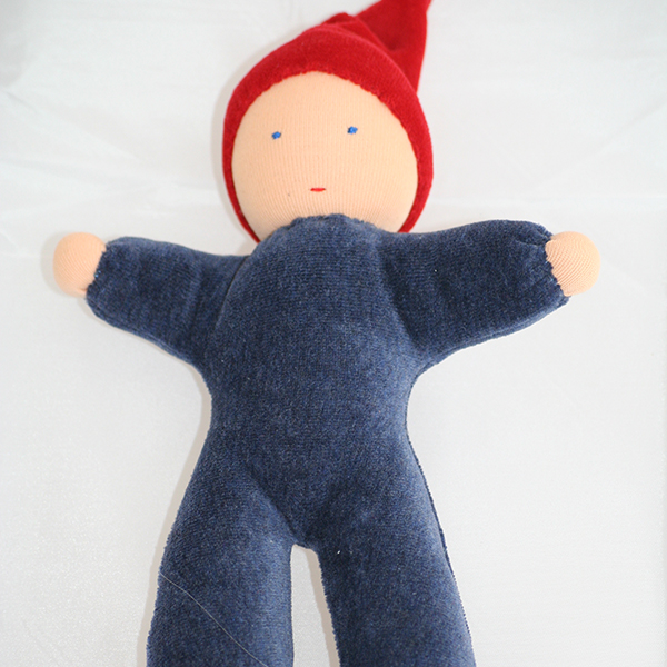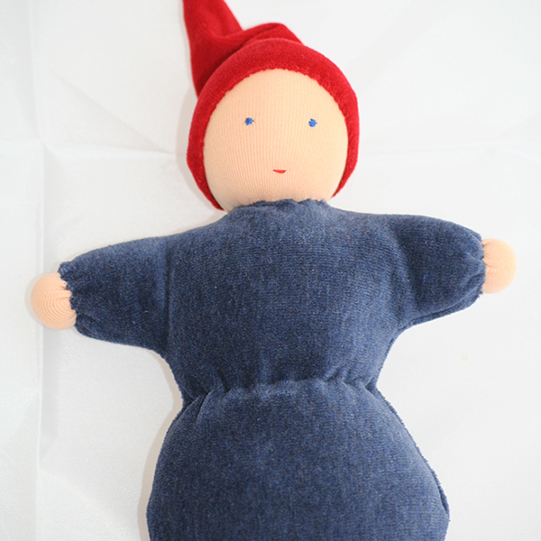 blau mit roter Mütze aus biozertifiziertem Nicki- und Trickotstoff und Wollhaare