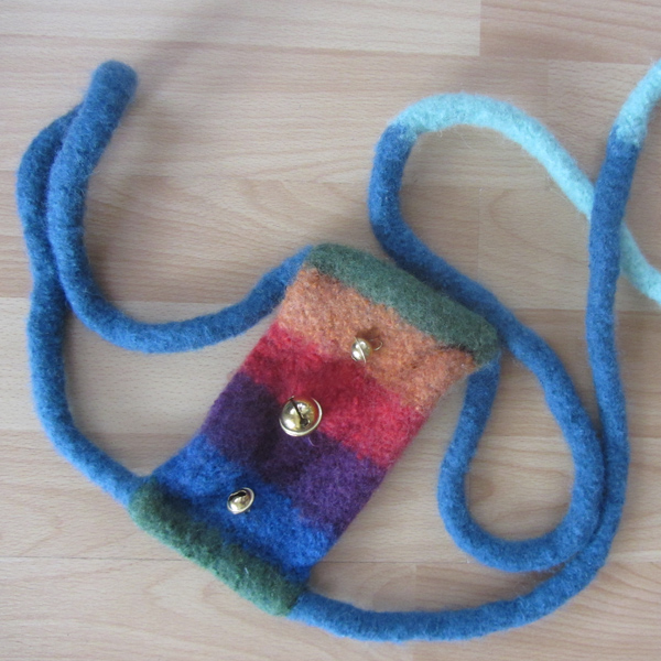 Strickgefilzte Pferdeleine nach Waldorfart, mit 3 Glöckchen