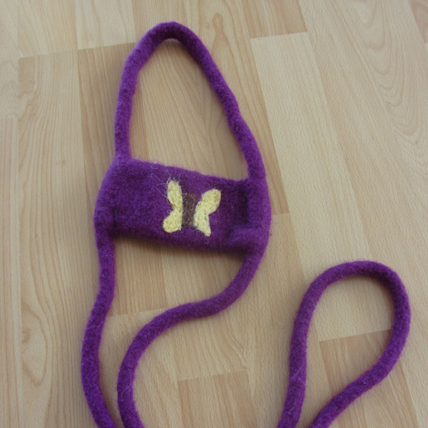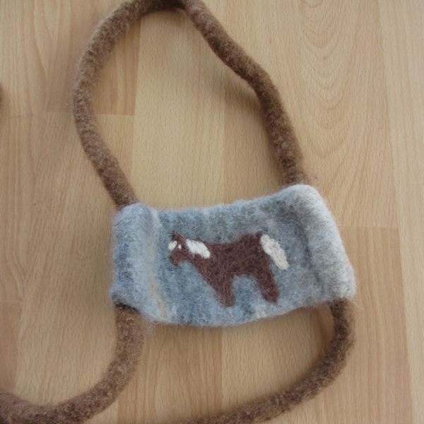 Strickgefilzte Pferdeleine nach Waldorfart, mit Nadelfilzmotiv